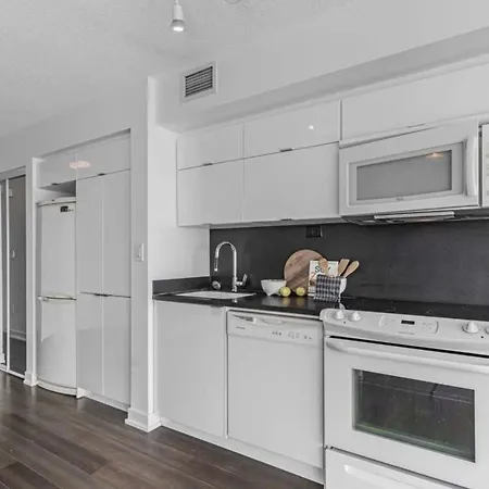 トロントのトロント・ダウンタウン地区にあるCentral Downtown Toronto Condoアパ-トはビリ-・ビショップ・トロント・シティ-空港から5キロメ-トル離れています. Cnタワ-から1.1kmのところに位置し,1のベッドル-ム,1のバスル-ム器具でいっぱいの台所があります.